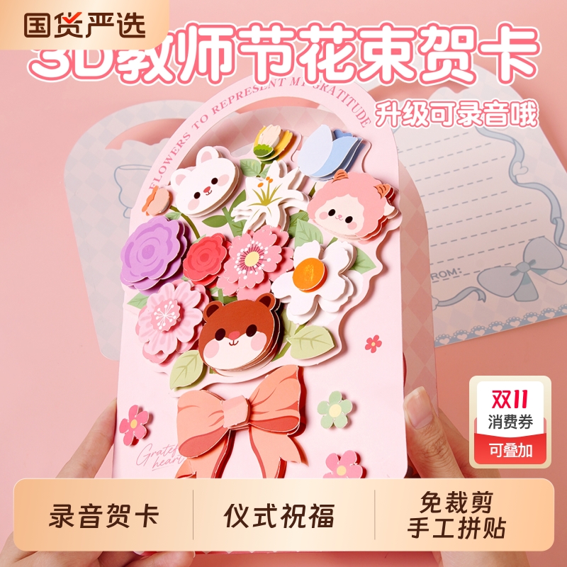 教师节贺卡礼物2025新款幼儿园小学送女老师高档卡片手工diy花束