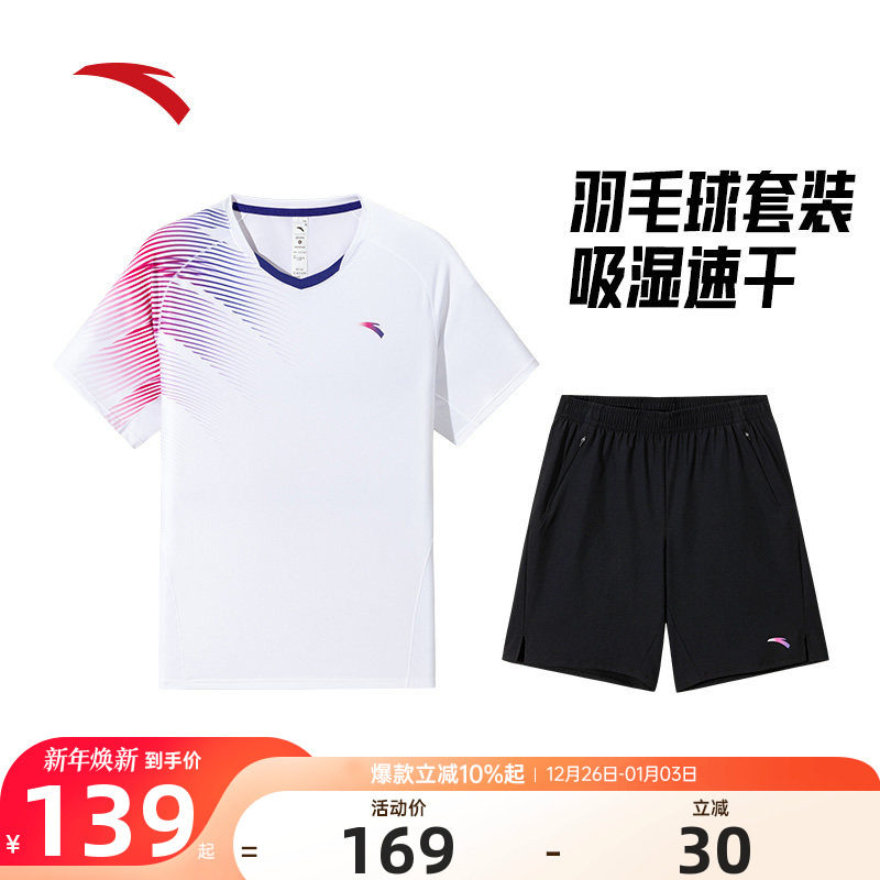 安踏羽毛球服套装男子速干透气网球乒乓球排球训练比赛队服两件套