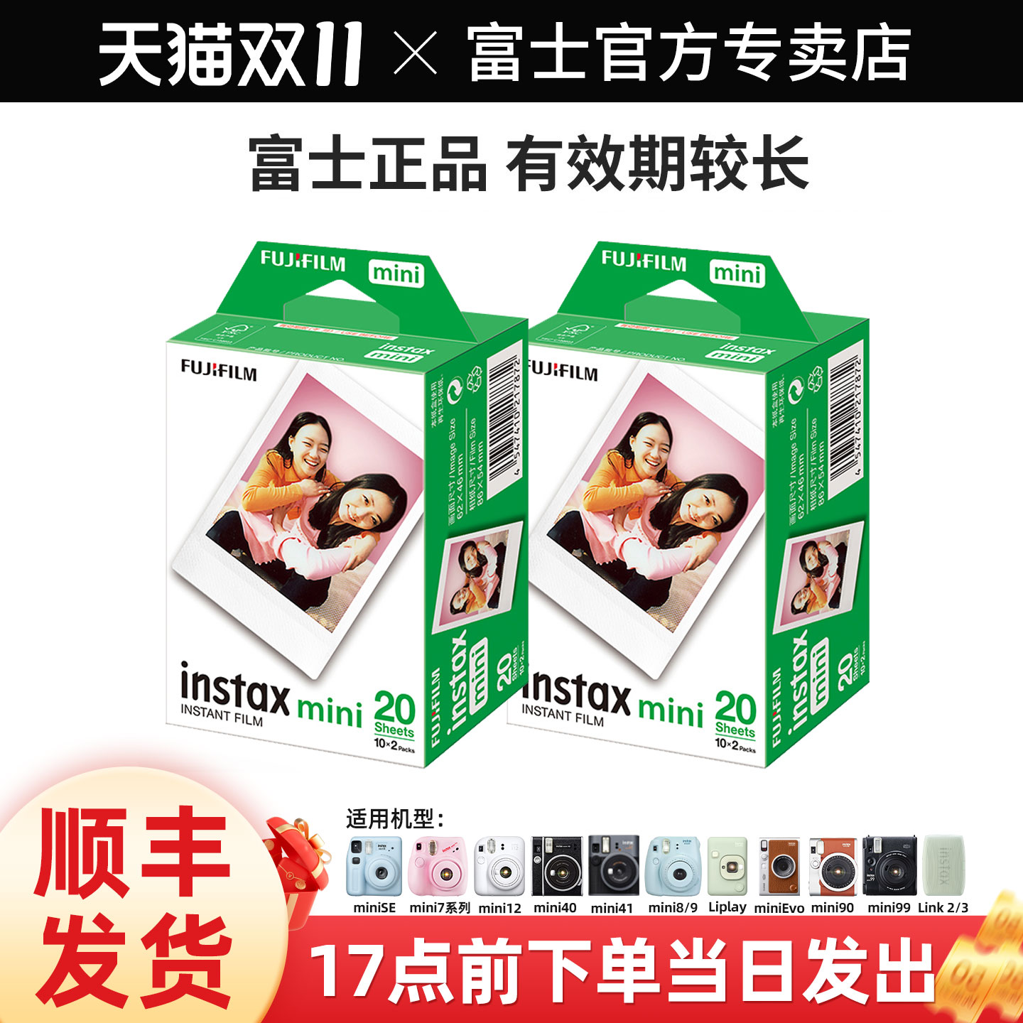 【自营】富士拍立得相纸instax mini11/7+/7c/8/9/25/7s/90/mini12/40/Link2胶片3寸迷你相片纸通用20张/盒