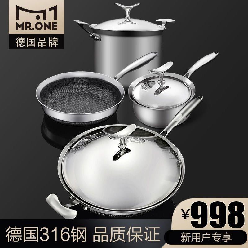 德国锅具套装组合316不锈钢炒锅煎锅汤锅奶锅不粘锅家用全套锅具