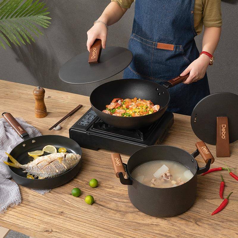 古法铁锅具套装组合三件套老炒锅平底锅汤锅不粘锅家用锅日式包邮