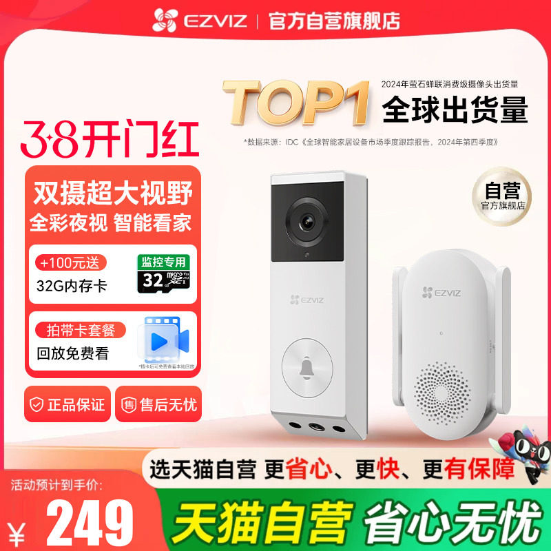 萤石EP3x可视门铃家用可视监控智能电子猫眼入户门防盗门摄像头
