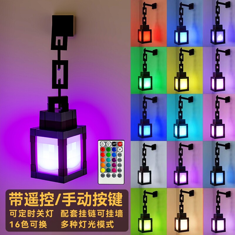 我的世界灯笼小夜灯新款遥控礼物装饰摆件氛围灯插电卧室定时充电