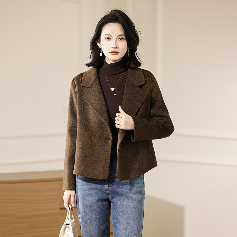毛呢外套女短款西服领修身气质小个子羊毛西装新款双面呢羊毛大衣