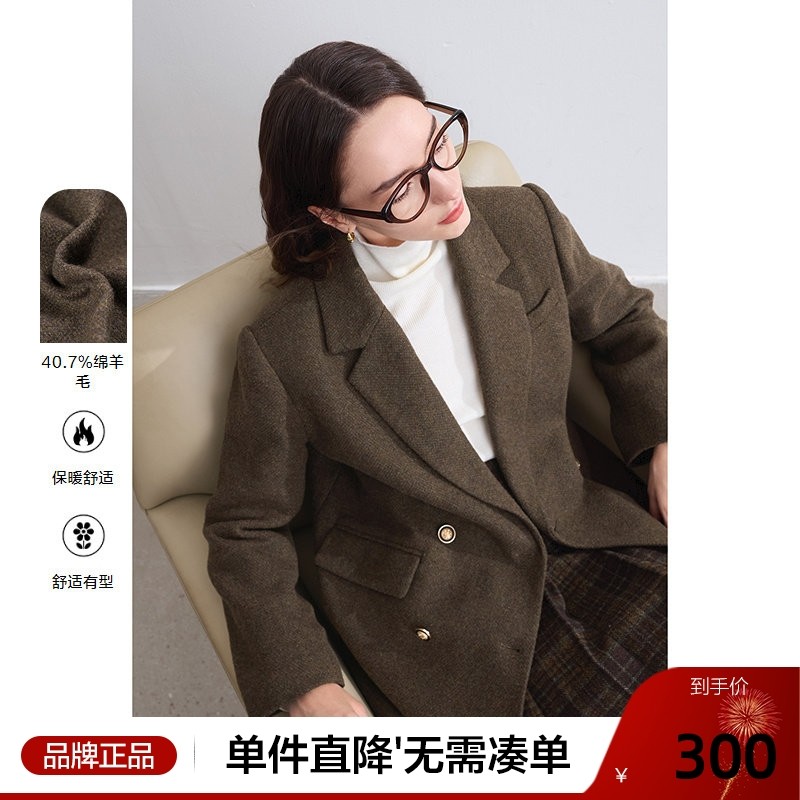 乔妮塔女装2025春秋新款50%羊毛含量高级感双排扣西服小西装外套