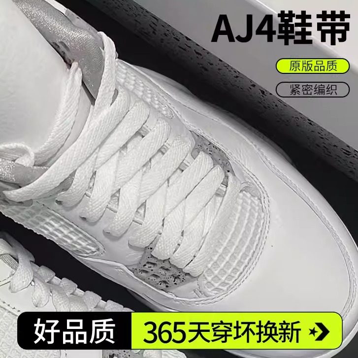 适配耐克AJ4白水泥白奥利奥篮球鞋男女扁平鞋带白色黑色 原装品质