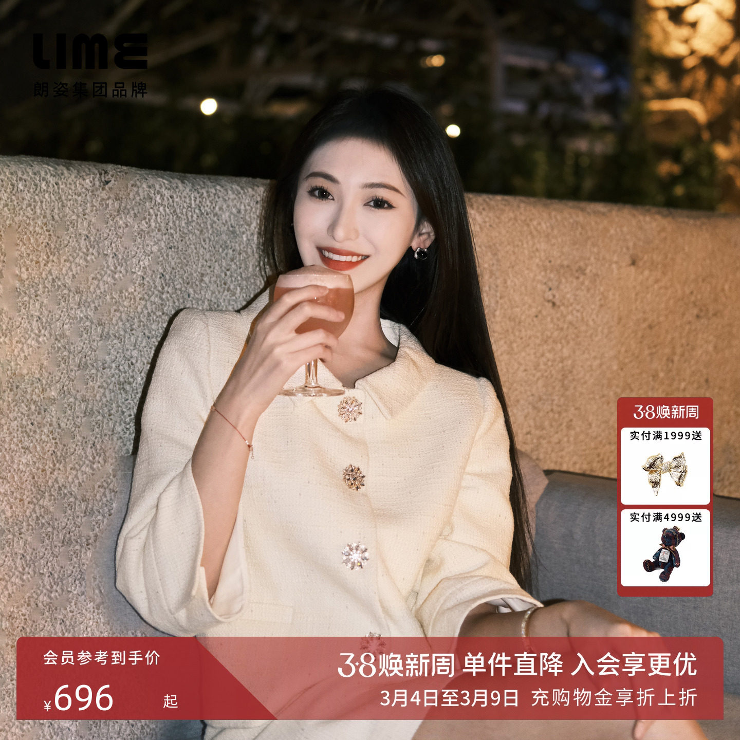 【祝绪丹同款】朗姿集团LIME莱茵粗花呢套装外套半裙羊剪绒短大衣