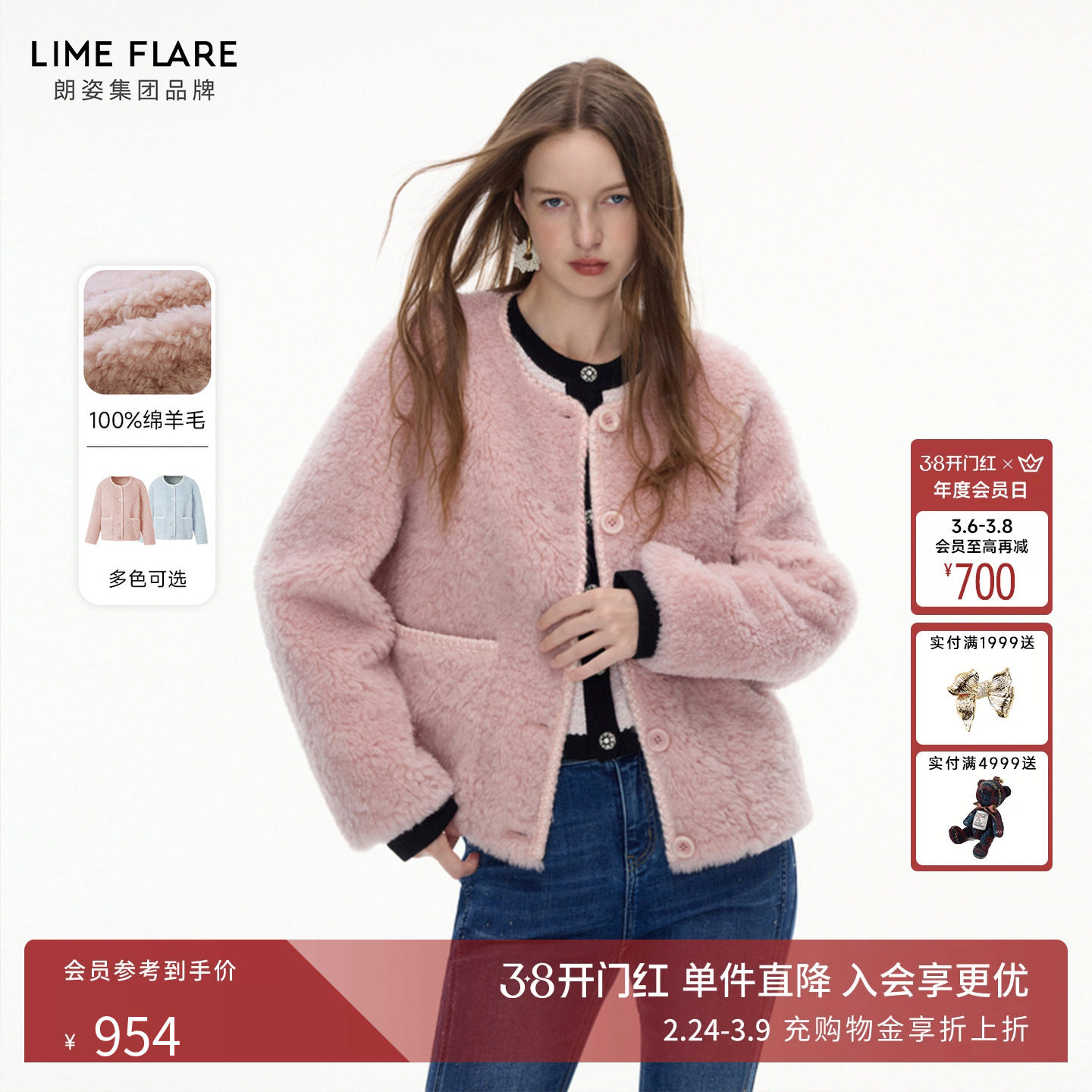 LANCY/朗姿2024冬新款高级感羊剪绒外套女颗粒纯羊毛大衣毛呢外套