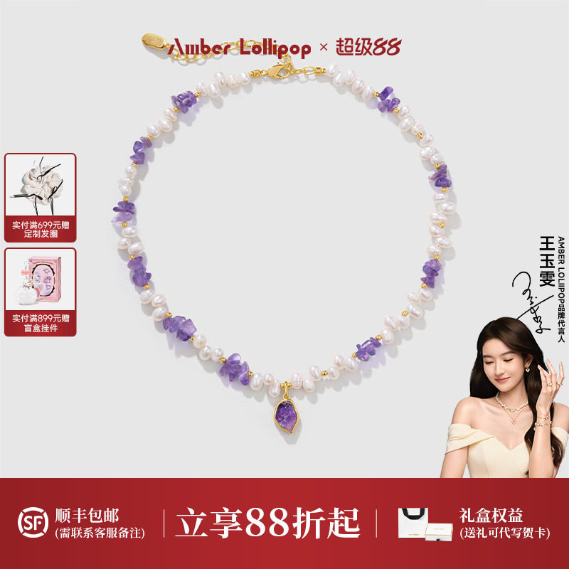 Amber Lollipop淡水珍珠项链女款紫水晶锁骨链轻奢宝石小米珠颈链