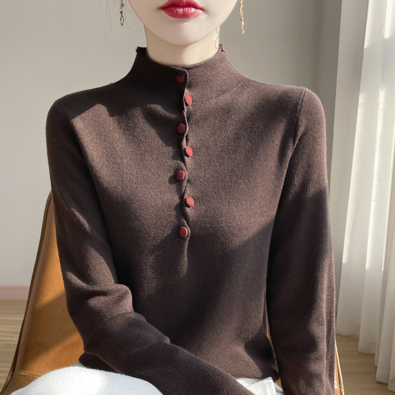 新款羊毛衫撞色半高领套头女毛衣设计感半开口气质打底衫减龄针织