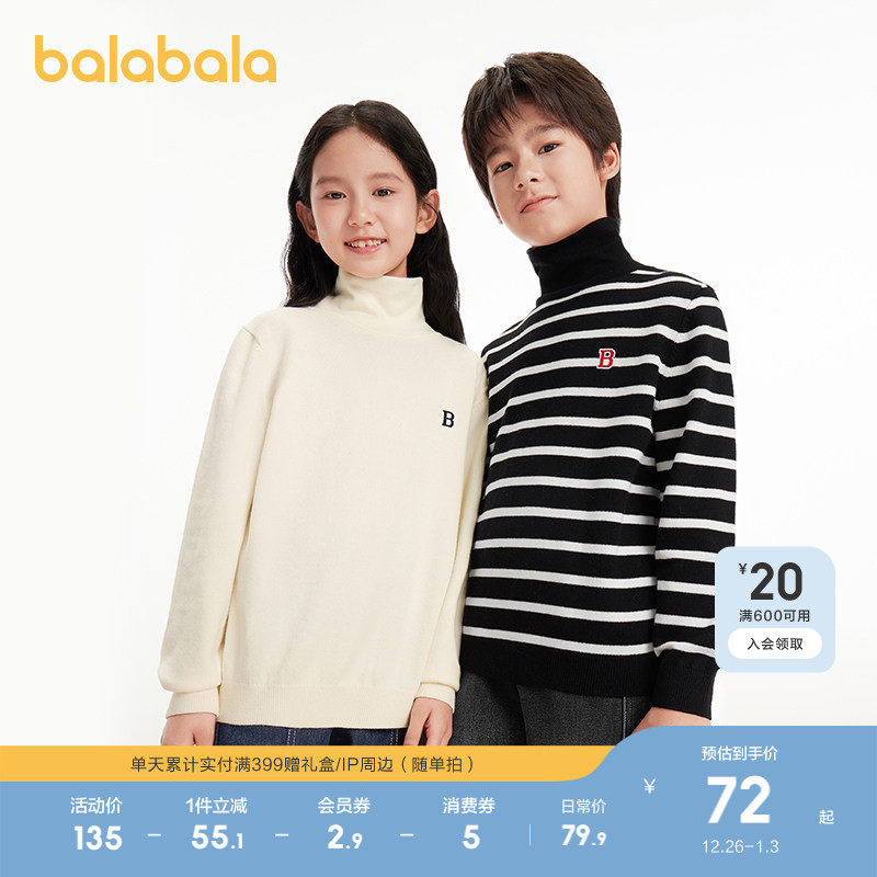 巴拉巴拉童装儿童毛衣新款秋冬装男童中高领毛衫女童套头针织衫潮