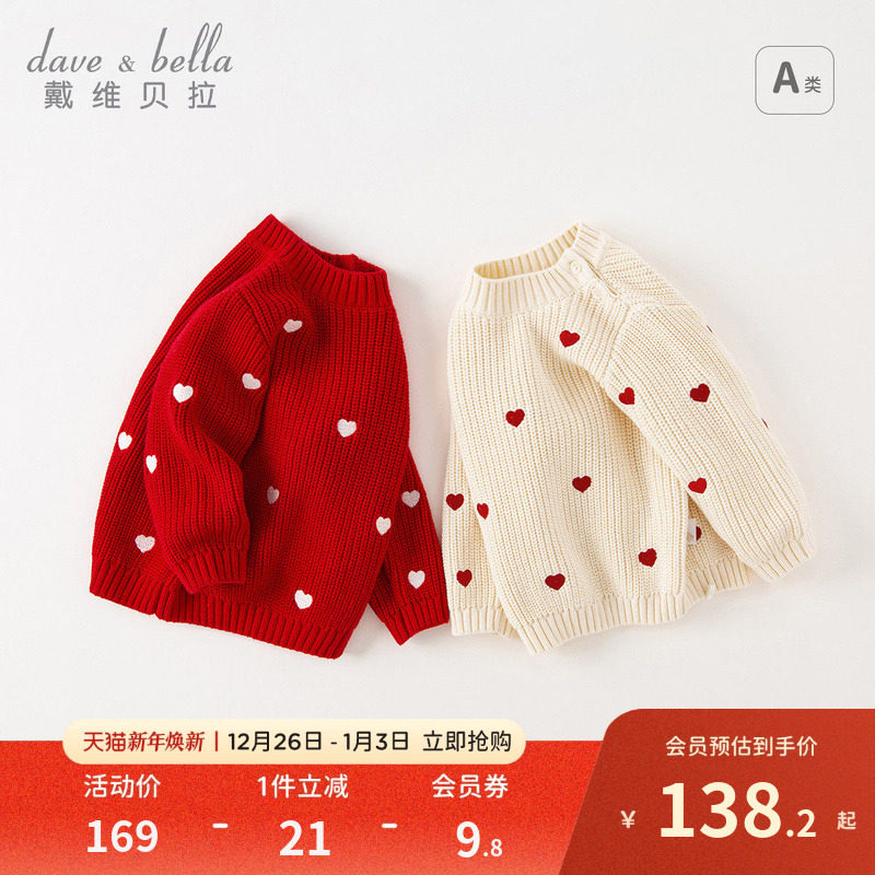 戴维贝拉女童毛衣儿童半高领新年2025冬季宝宝红色套头针织衫上衣