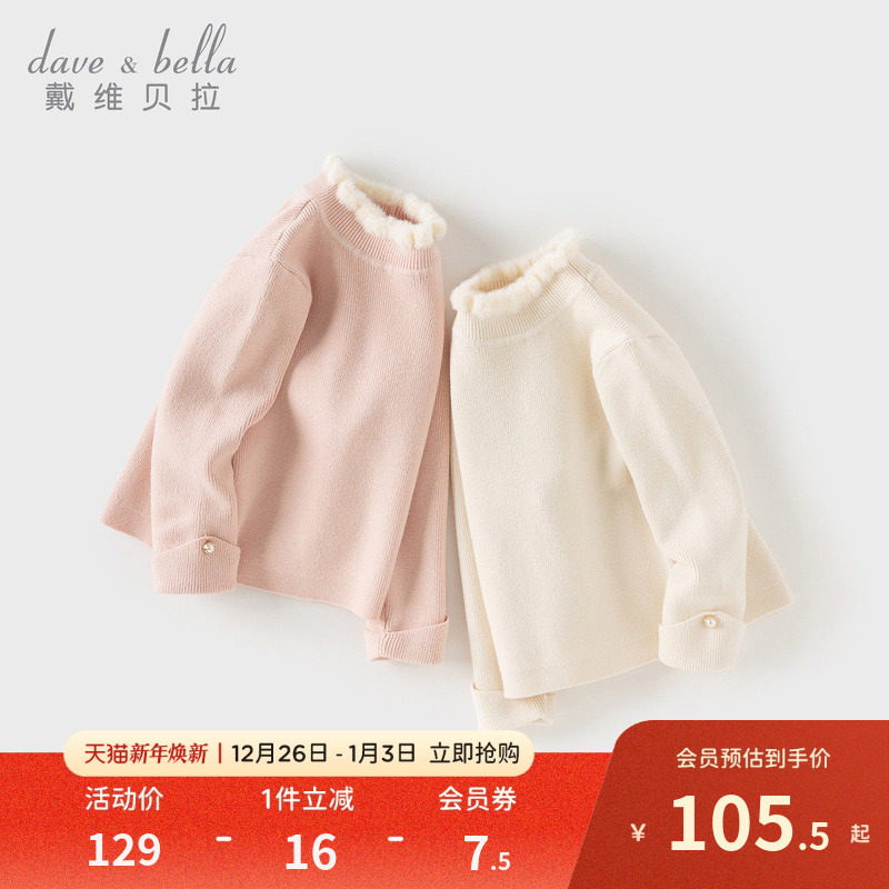 戴维贝拉女童半高领毛衣男童半边绒针织衫保暖冬季新款儿童套头衫