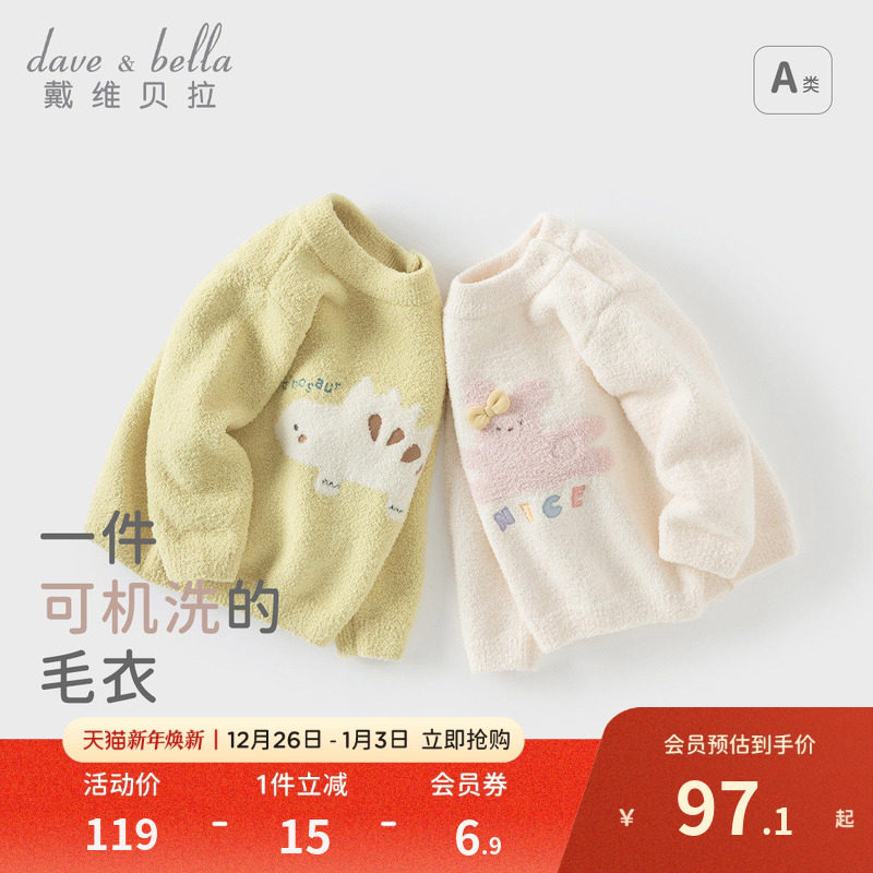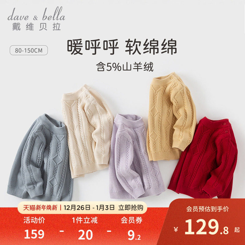 戴维贝拉儿童半高领毛衣套头衫2025秋冬新款男童女童新年上衣