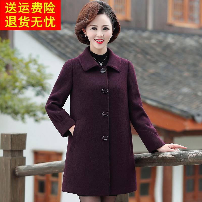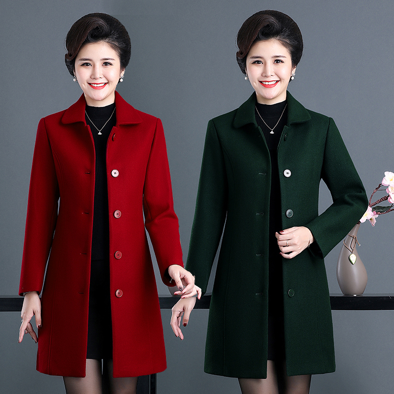 中年妈妈冬装毛呢外套新款中老年妇女冬季中长款加绒加厚呢子大衣