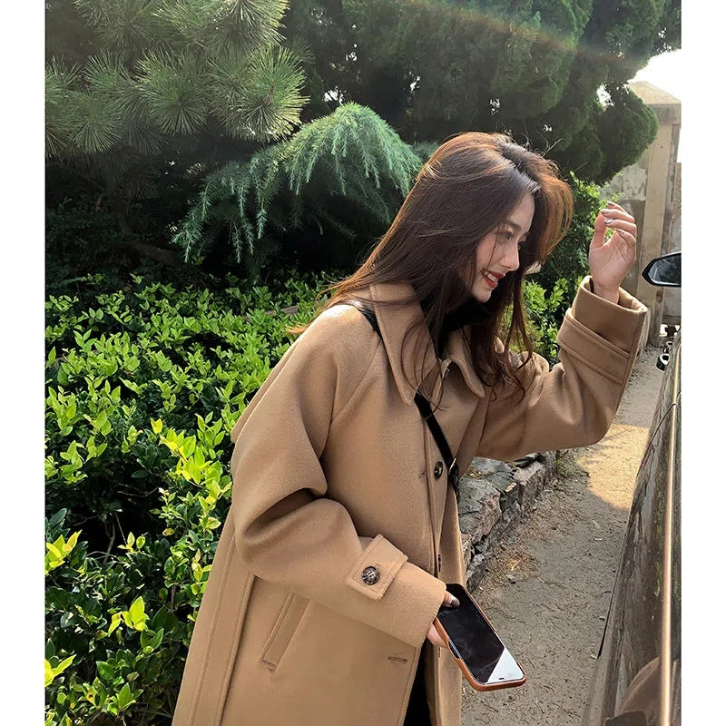 - 长款毛呢大衣韩国