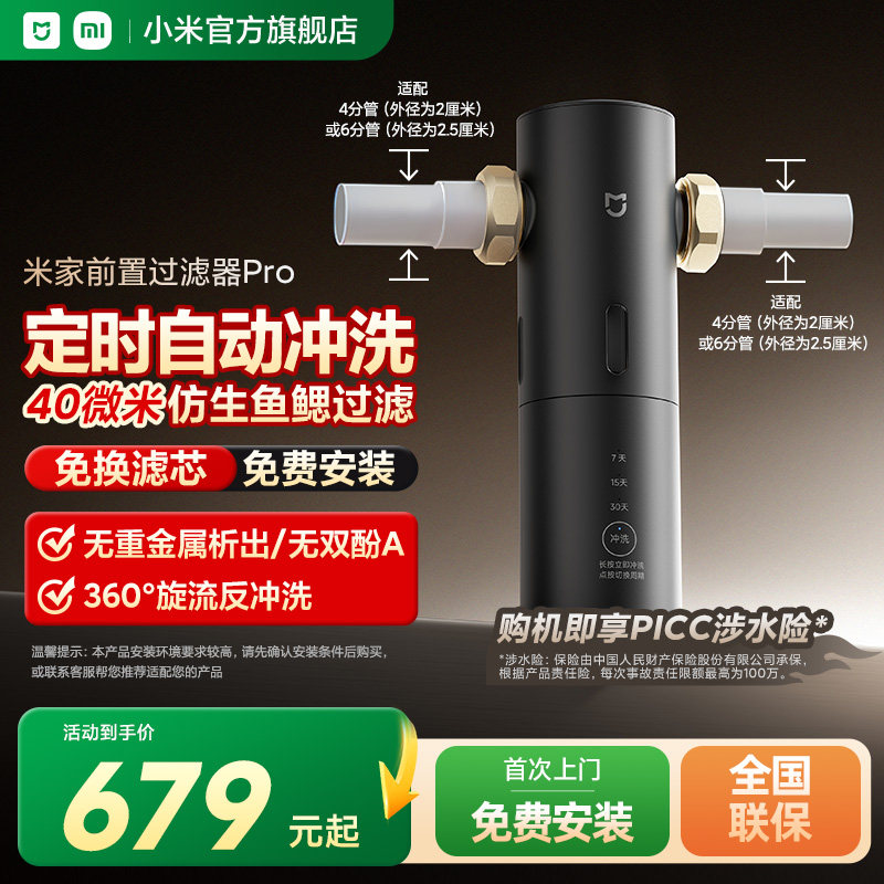 米家前置过滤器 Pro 定时自动冲洗40微米仿生鱼鳃叠片过滤反冲洗