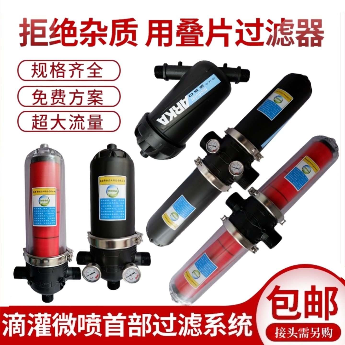 农业滴灌过滤器喷灌微喷农用灌溉2寸网式碟片T形大棚叠片式过滤器