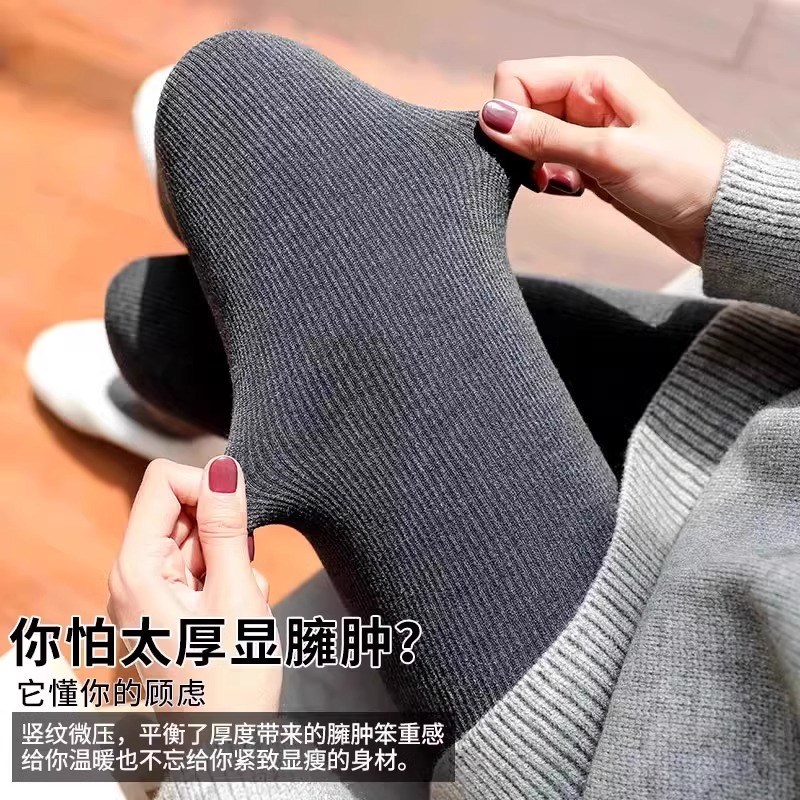 L【百人验货】羊脂裤秋冬加绒加厚女中高腰棉竖条纹连踩脚打底裤