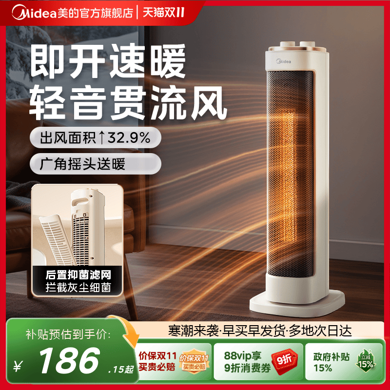 美的取暖器家用热风机电暖气小型暖器速热省电电暖炉小暖阳暖风机