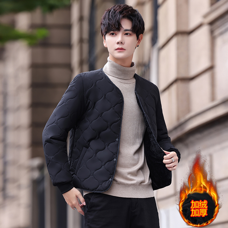 冬季加绒加厚无领内胆棉衣男短款2025新款男士休闲保暖棉服外套潮