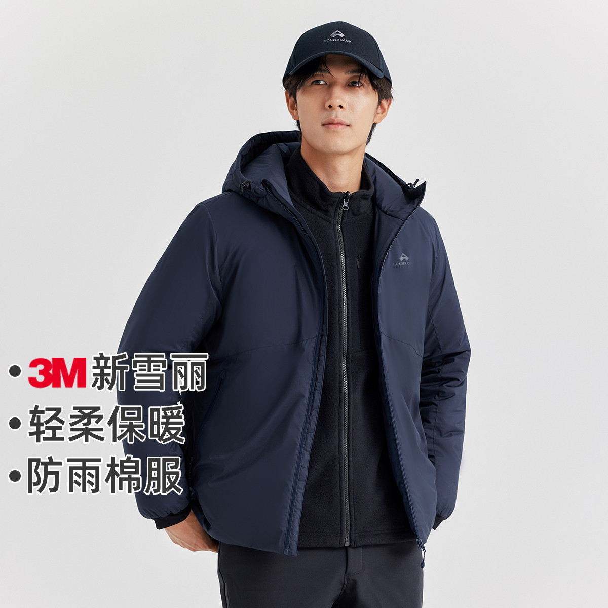 拓路者秋冬季3M新雪丽棉衣男短款连帽轻薄P棉夹棉保暖防水外套