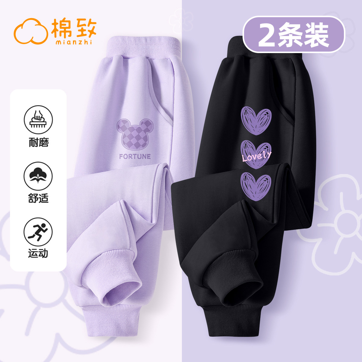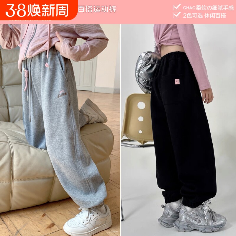 棉致女童裤子2026新款春秋宽松休闲卫裤女大童长裤薄款儿童运动裤