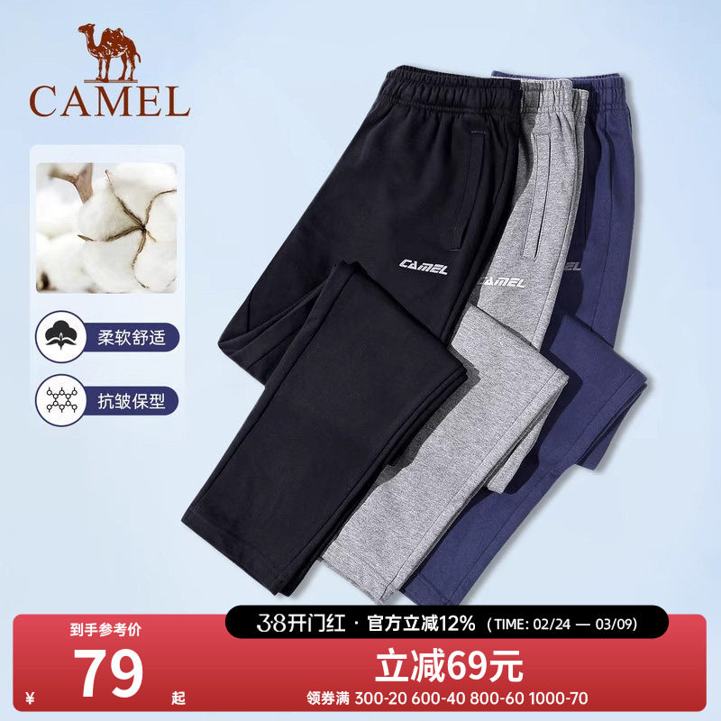 骆驼运动男士长裤春秋季薄款裤子宽松休闲直筒透气跑步针织卫裤女