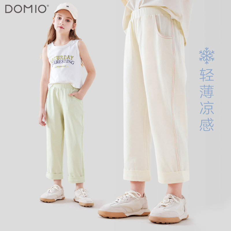 女童裤子薄款防蚊裤26夏季儿童运动裤大童直筒裤休闲裤宽松阔腿裤