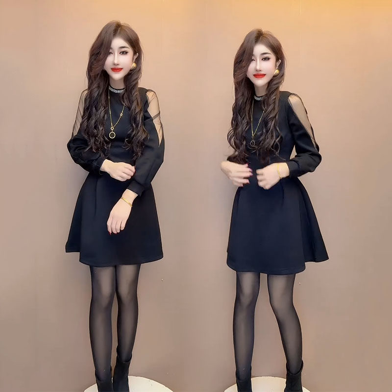 - 连衣裙 高腰 秋冬 大摆