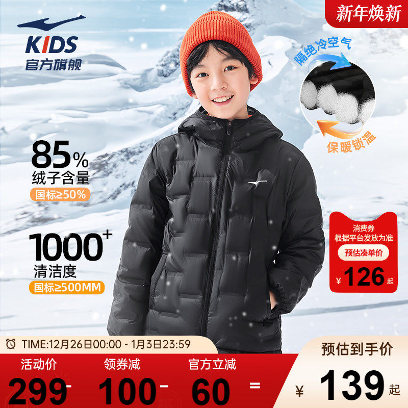 鸿星尔克童装儿童轻薄羽绒服冬季男童保暖外套防寒服女童防水冬装