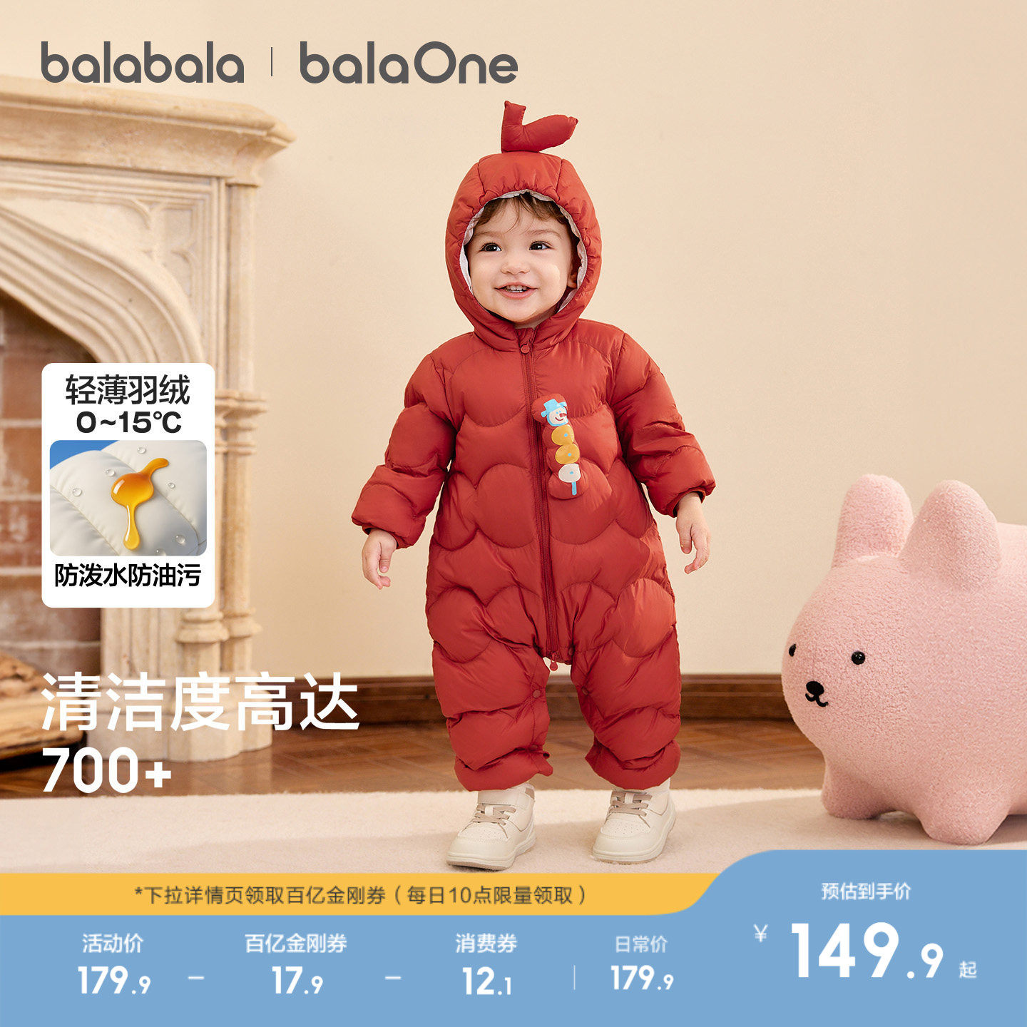 巴拉巴拉儿童轻薄羽绒服男女童婴儿连体衣2025新款宝宝冬装造型萌