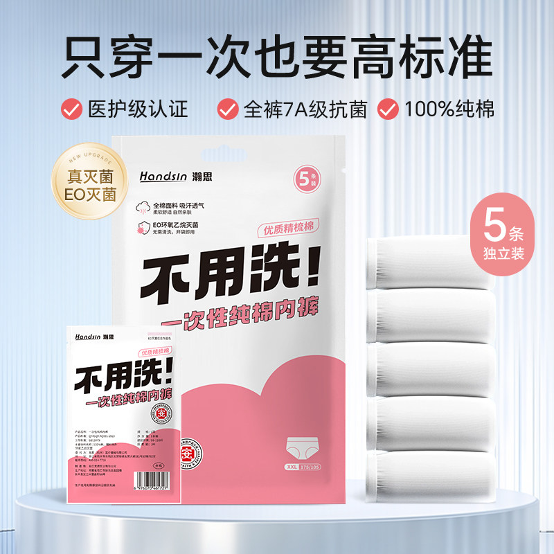 handsin瀚思一次性纯棉内裤女士安全灭菌短裤日抛旅行出差免洗裤