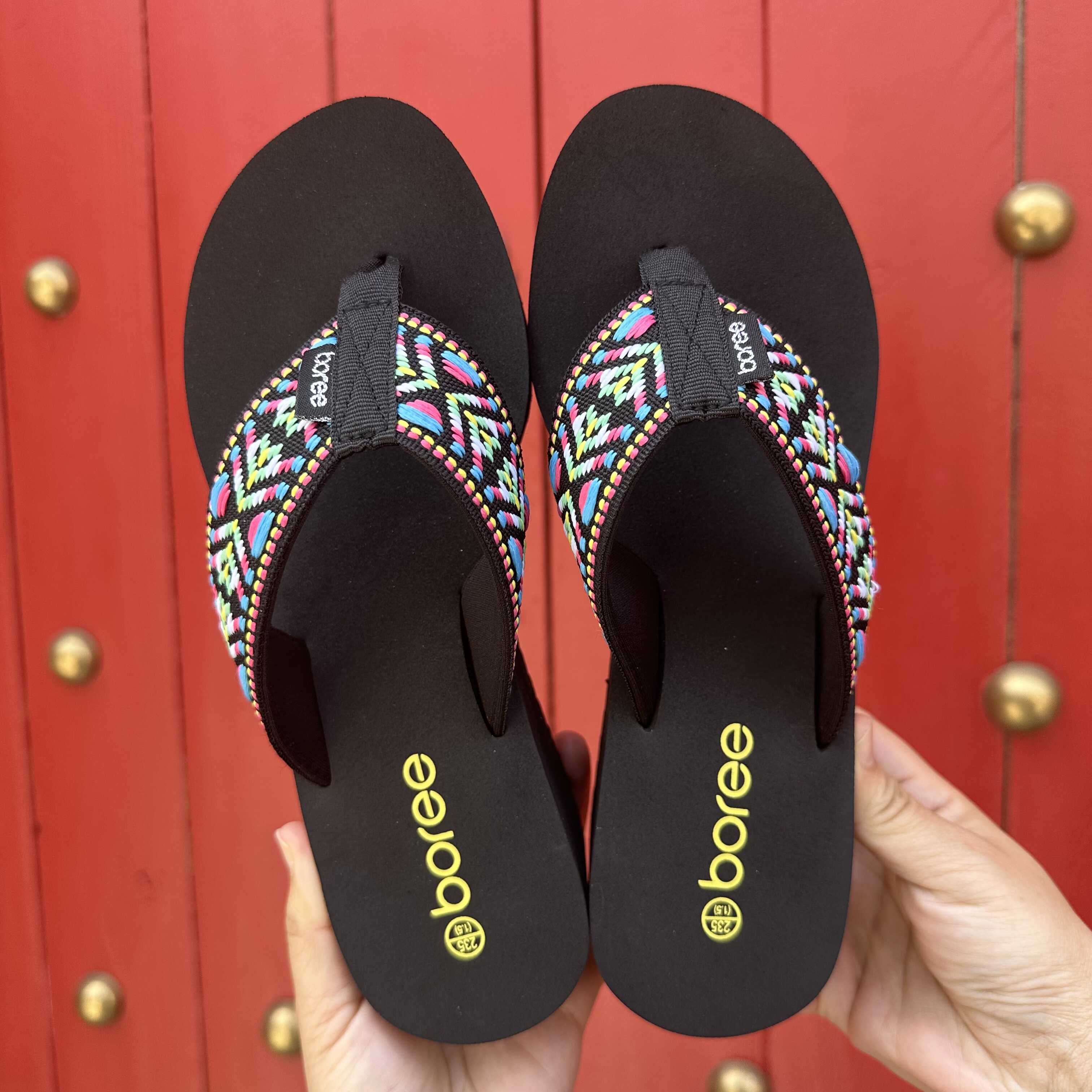 中跟沙滩女拖鞋时尚外穿坡跟凉拖鞋厚底防滑刺绣民族风海边人字拖