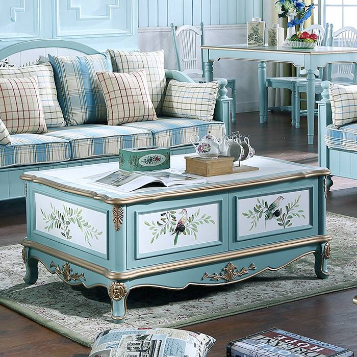 美式乡村实木茶几电视柜组合欧式客厅地中海卧室田园彩绘创意茶几
