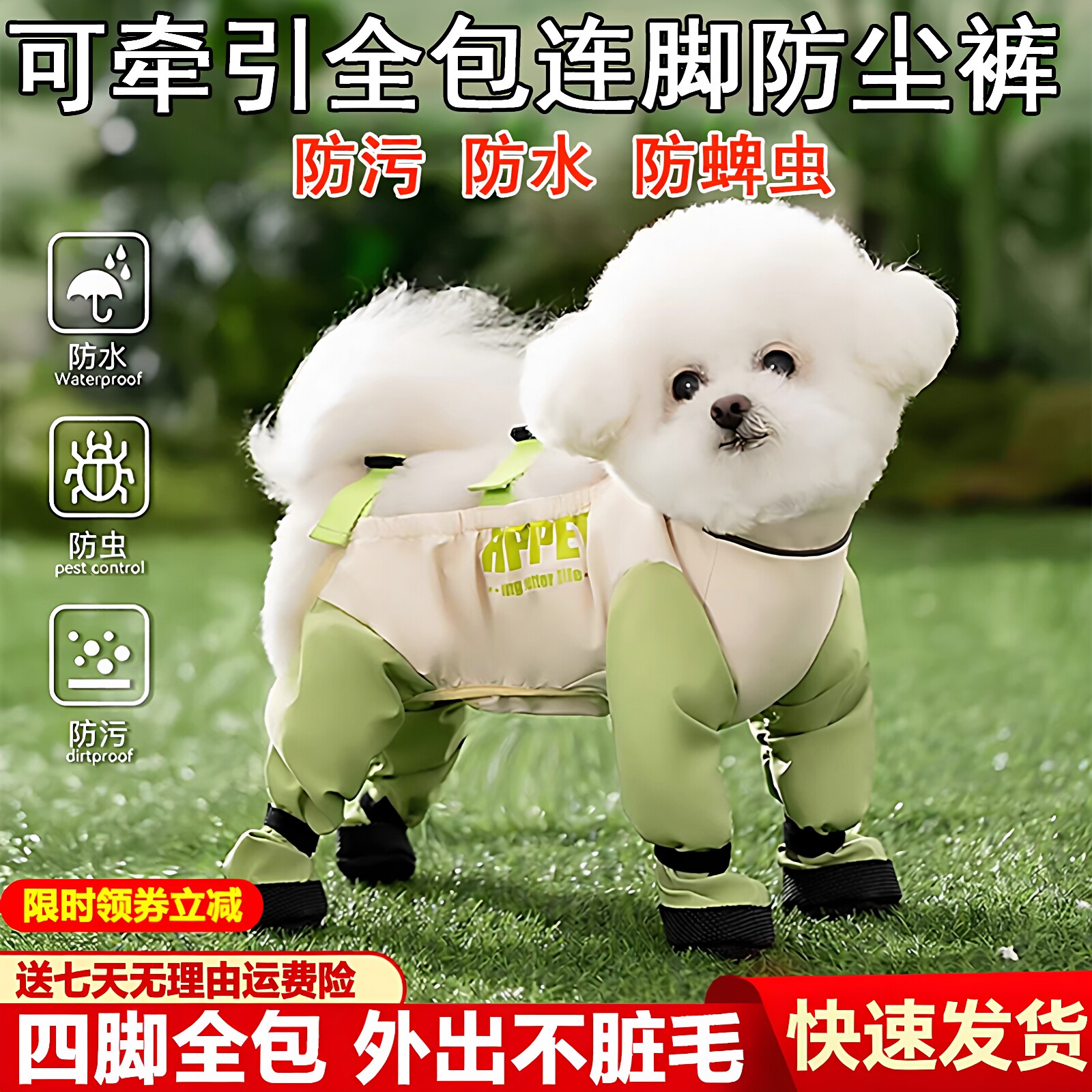 狗狗四腿防脏裤套防水防尘连脚外出遛狗神器泰迪比熊小狗四脚衣服
