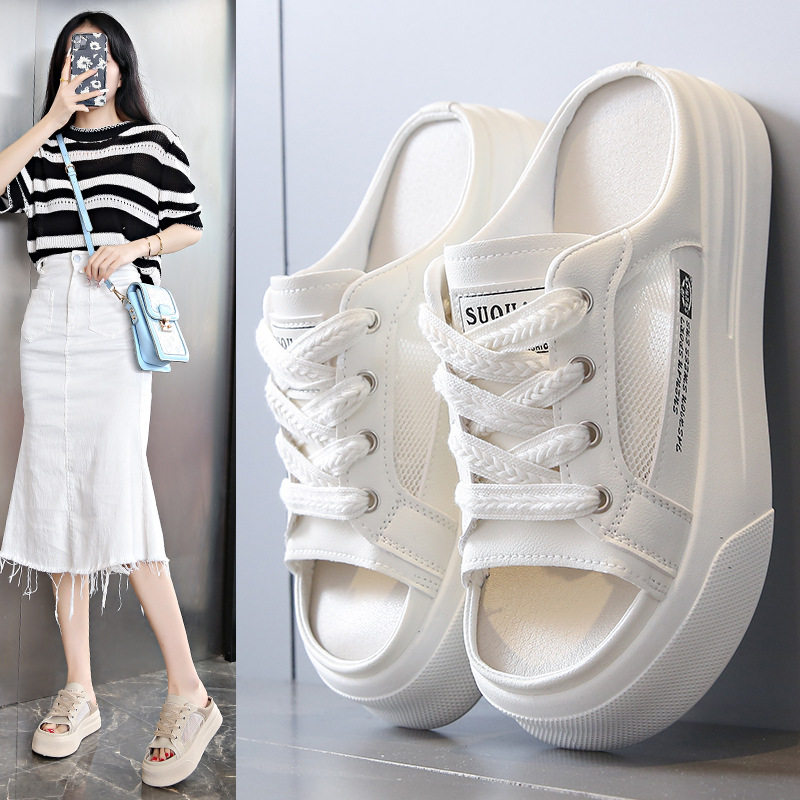 小白鞋女厚底春夏季女鞋2025新款韩版休闲百搭学生带增高松糕鞋潮