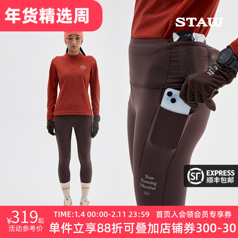 STAW世拓0度狠稳腰包2.0抓绒紧身长裤加绒跑步运动瑜伽健身裤子女