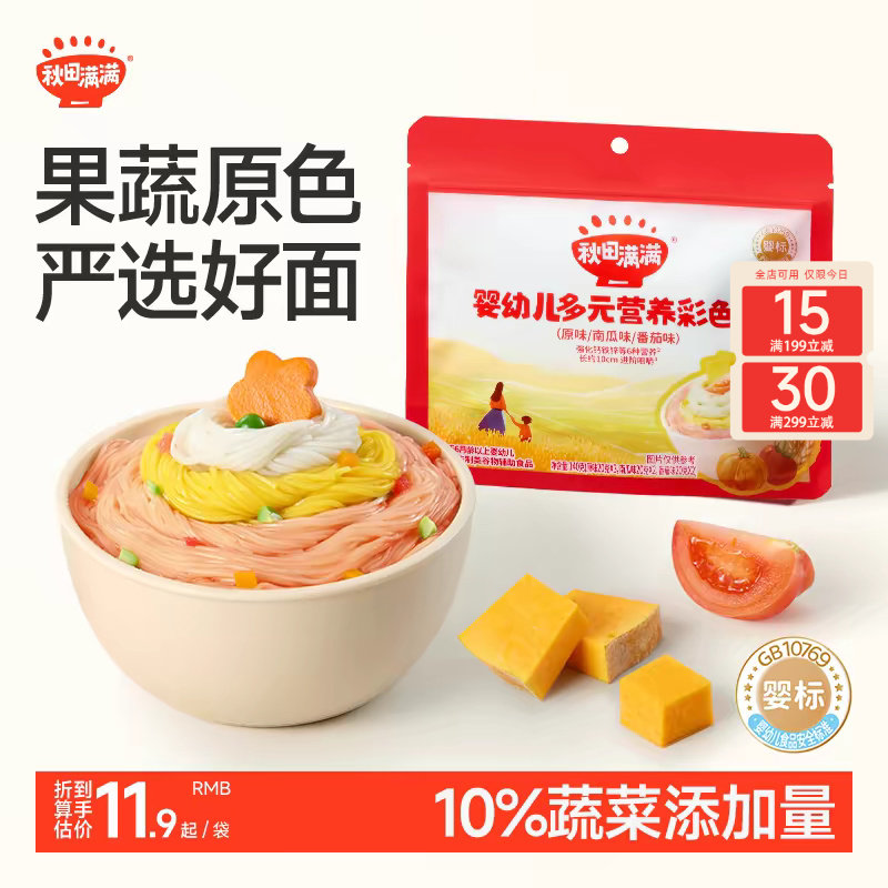 秋田满满宝宝面条挂面婴幼儿果蔬营养彩色面无添加盐儿童线面辅食