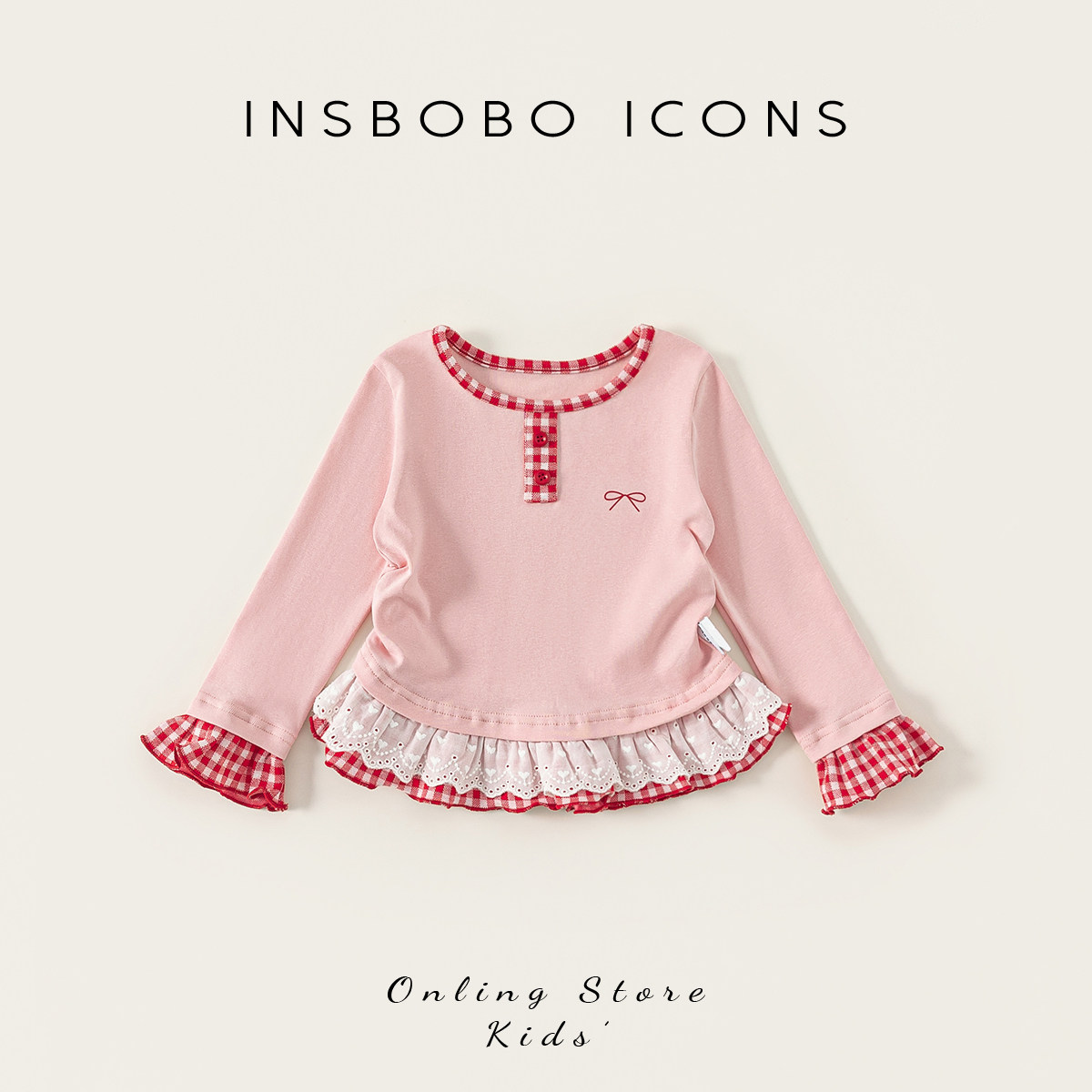 INSbobo儿童T恤春装纯色宽松2026春季新款时尚花边女童打底衫童装