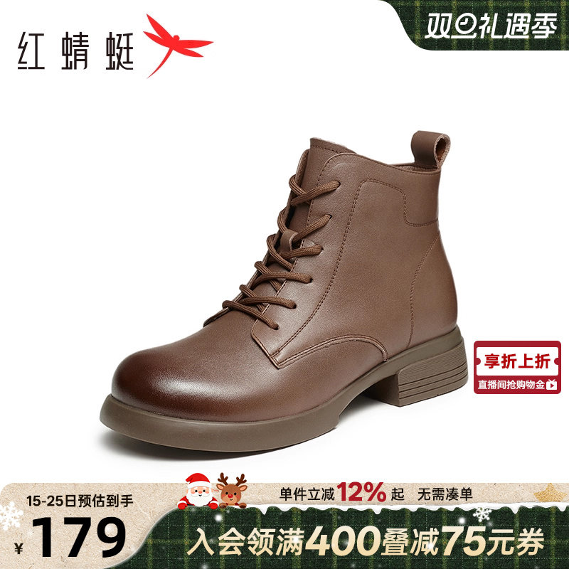 红蜻蜓马丁靴女款冬季新款女鞋厚底加绒保暖短靴中老年人妈妈棉鞋