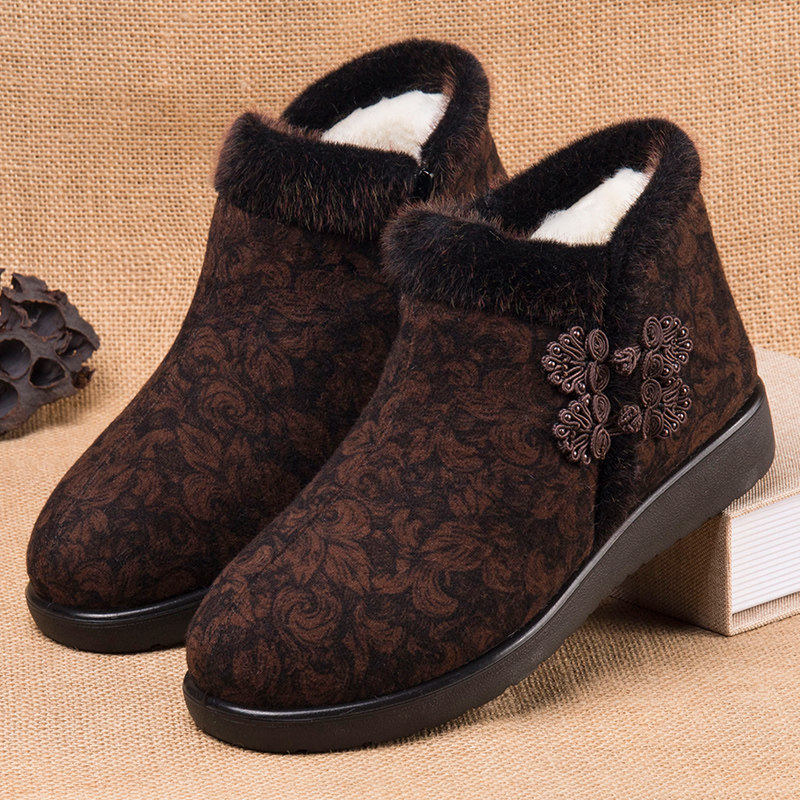中老年人女鞋冬季羊毛鞋雪地靴妈妈款舒适厚底平底加绒保暖女棉鞋