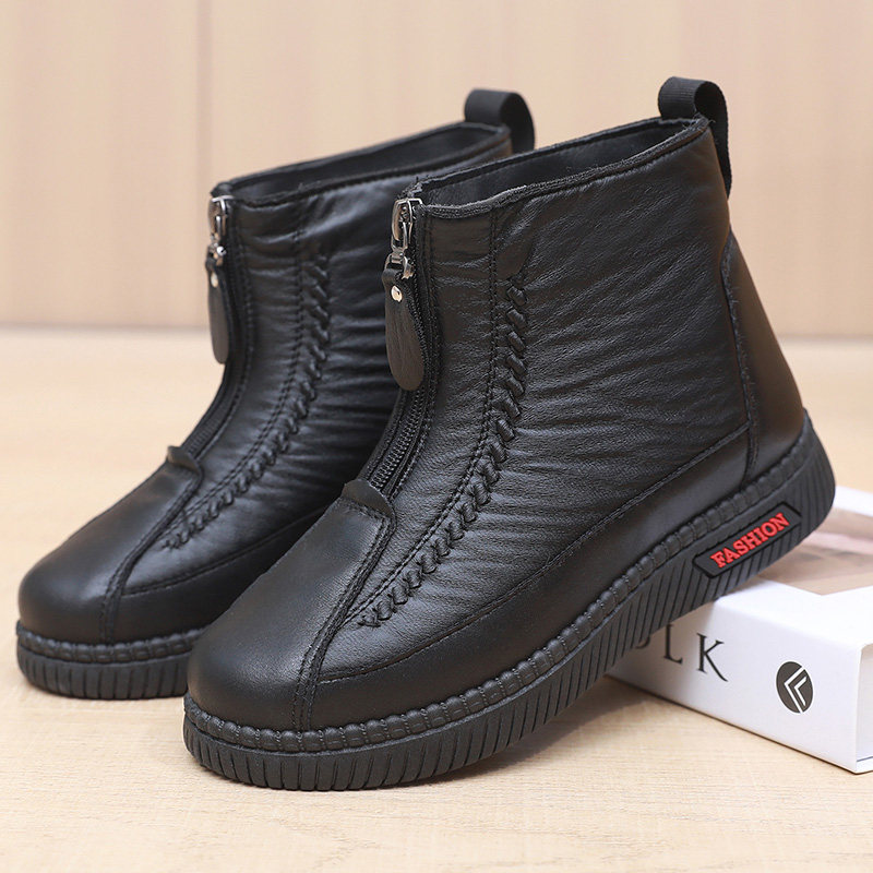 妈妈鞋冬季棉鞋中年女鞋雪地靴加绒保暖中老年人防滑短靴软底皮鞋