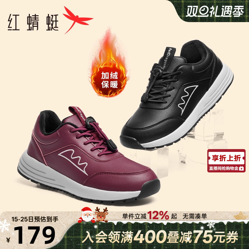 红蜻蜓妈妈棉鞋冬季女鞋中老年人加绒运动鞋雪地靴加厚保暖跑步鞋
