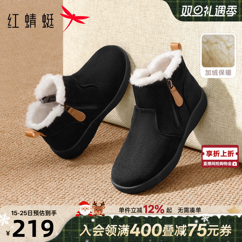 红蜻蜓妈妈棉鞋冬季加绒女鞋加厚保暖中老年人靴子毛绒雪地靴鞋子