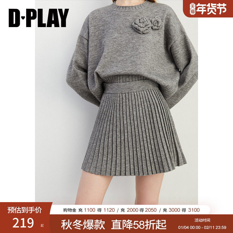 DPLAY2025秋季日常百搭灰色半身裙高腰显瘦针织a字短裙套装女