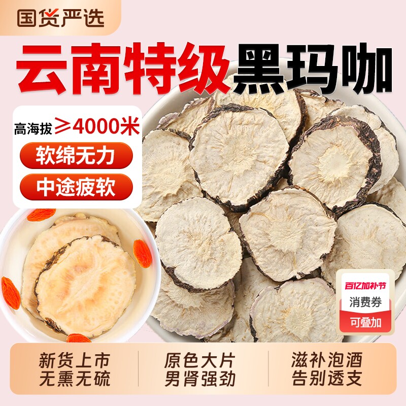 云南丽江黑玛卡片500g官方旗舰店玛咖中药材泡茶泡酒马卡切片