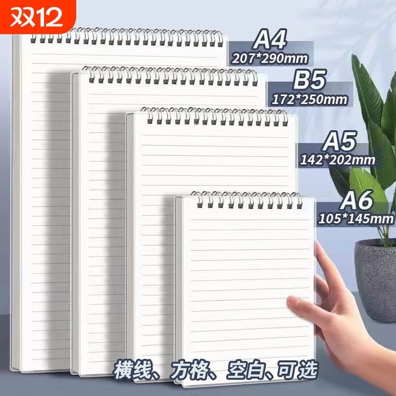 本子梦瑾笔记本上翻ins风简约线圈本b5加厚大学生考研记录本a5横线小方格本不硌手记事本文具小网格本a4透明