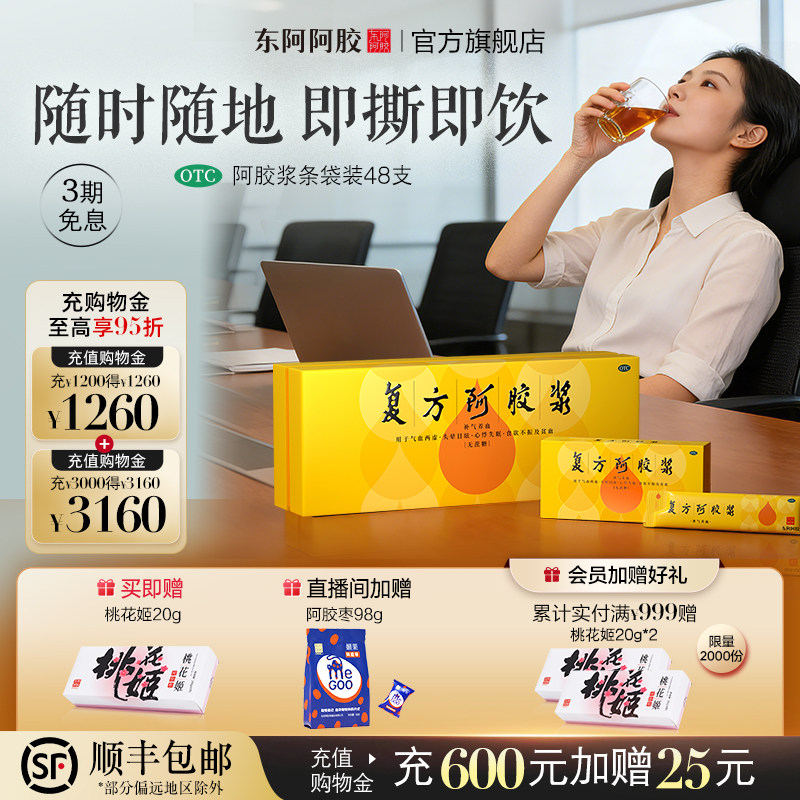 东阿阿胶复方阿胶浆48支阿胶口服液补血口服液补气补血失眠中秋礼