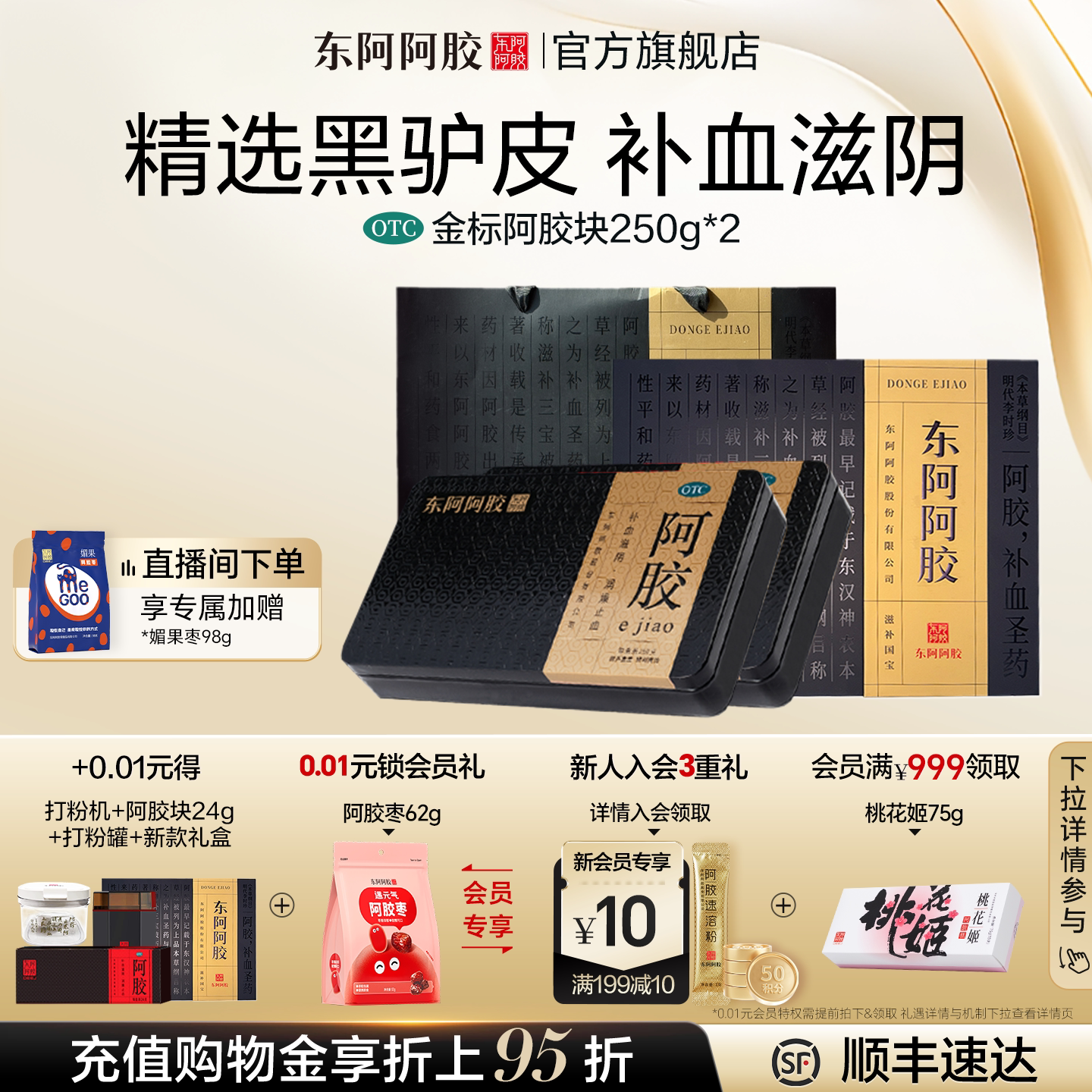 东阿阿胶金标阿胶块250g补血滋阴润燥止血官方正品长辈送礼滋补品